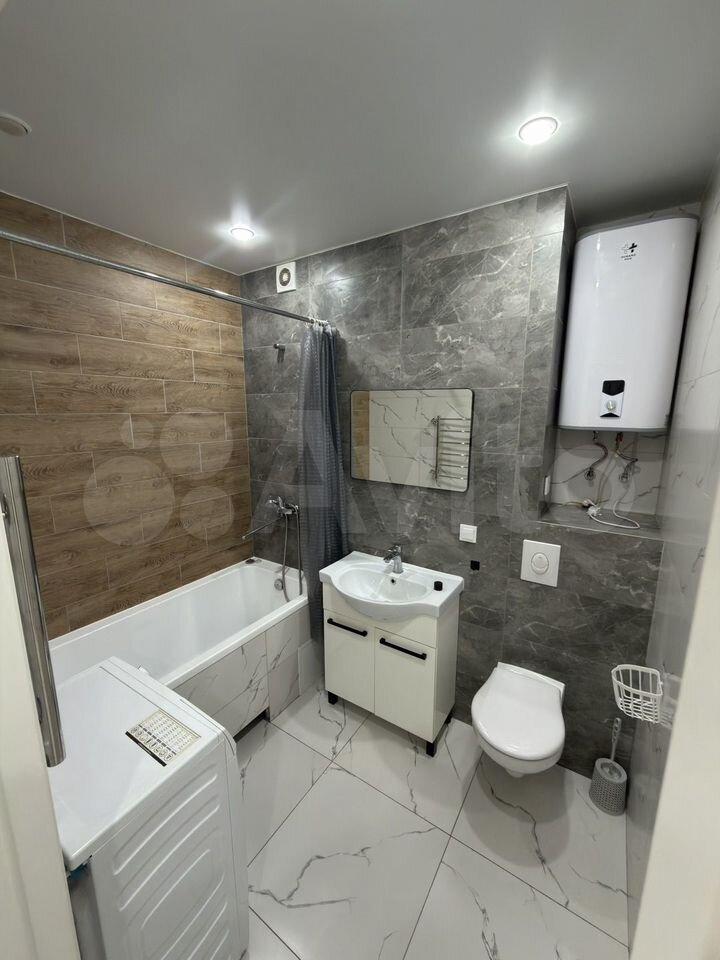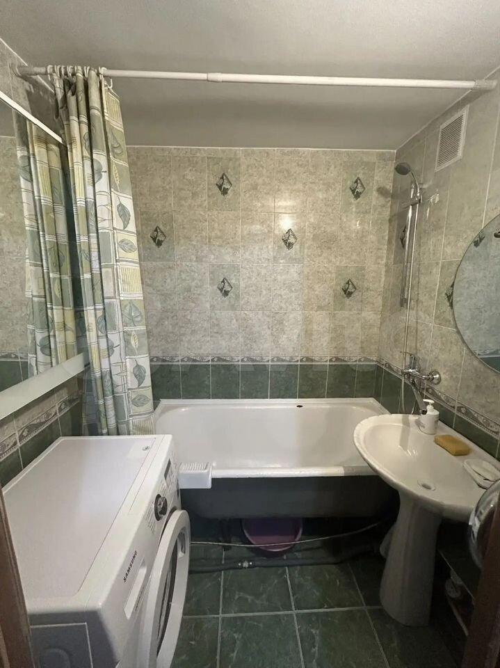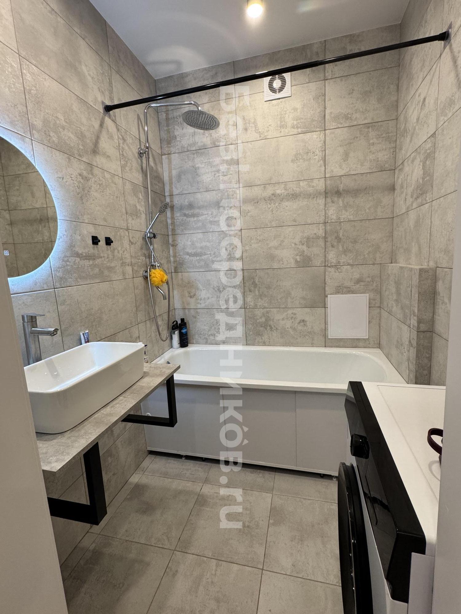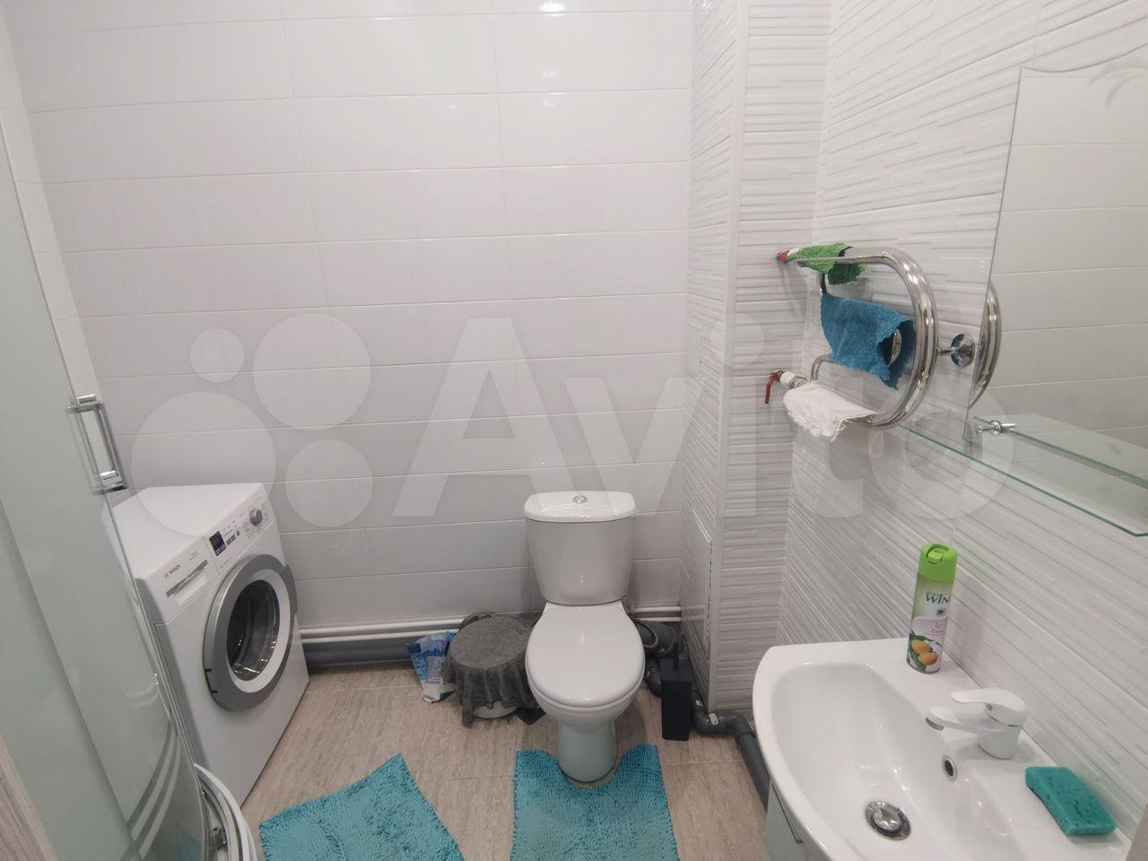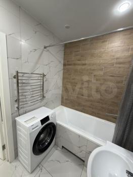 - В ванной: стиральная машинка, зеркальный шкаф, настенное зеркало, удобная стойка с полками для предметов ухода и хоз. мелочей.