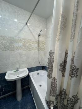 Санузел совмещённый, оборудован водонагревателем и стиральной машиной. Из мебели шкаф-купе, шкаф и комод.