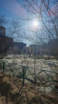 Школа, дет. сад рядом. Детская площадка, парковка со шлагбаумом во дворе.