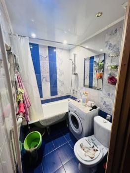На кухне - холодильник, электрочайник, электрическая плита,кухонный гарнитур. Санузел и ванная комната вместе, имеется стиральная машинка-автомат.
