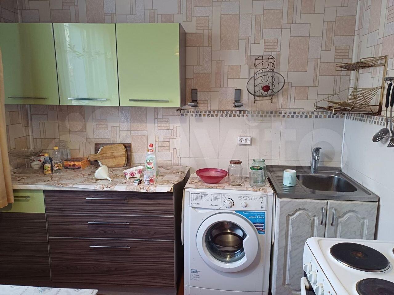 санузел - совмещённый, мебель - кухня, хранение одежды, спальные места, холодильник, плита, стиральная машина.