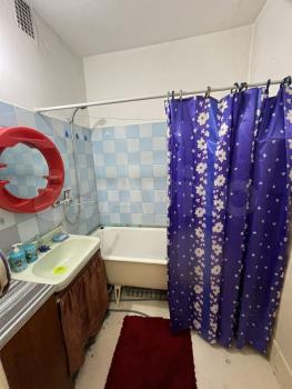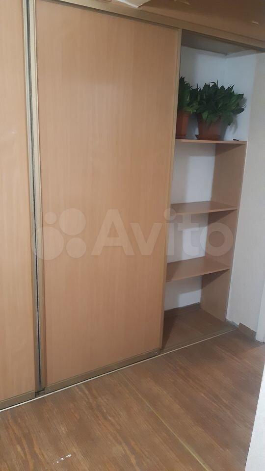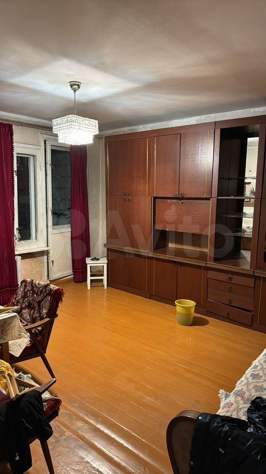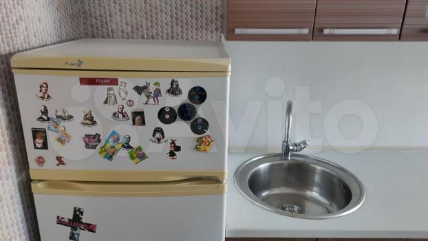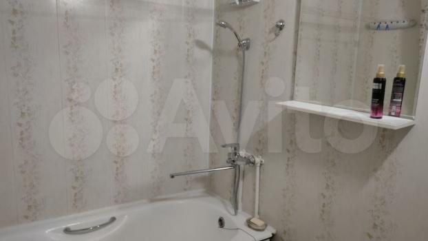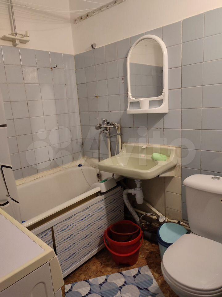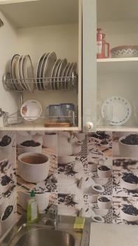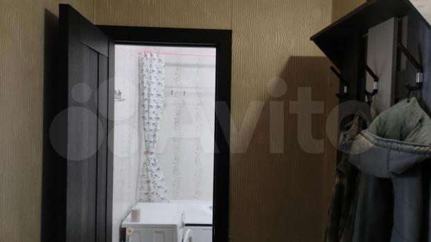 В квартире имеется вся необходимая мебель: шкафы, диван,кухонный гарнитур и обеденная зона. Из бытовой техники — холодильник и плита. Санузел совмещённый, оформлен плиткой.