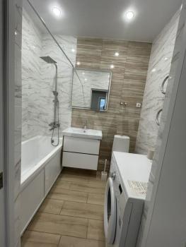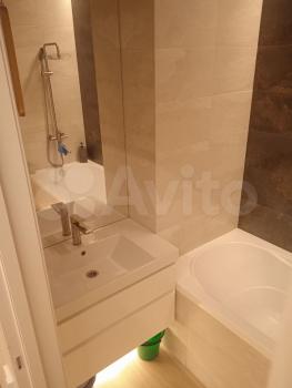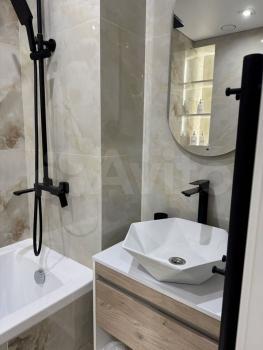 Квартира с дизайнерским ремонтом, полностью меблирована и готова к комфортному проживанию. В комнате есть вся необходимая мебель, а на кухне - современная бытовая техника: холодильник, телевизор, стиральная машина. Ванная комната оборудована ванной. Совмещённый санузел создаёт дополнительные удобства.