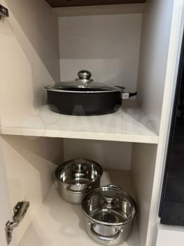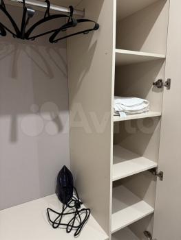 Есть варочная панель, духовой шкаф, стиральная машина, гардеробная, диван на два спальных места, холодильник, водонагреватель на 30 л.