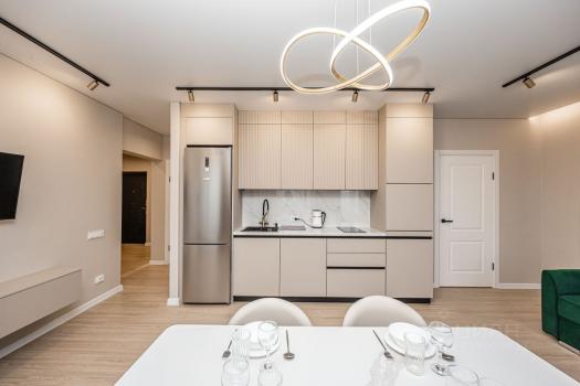 В квартире есть все необходимое для комфортного проживания: стильная мебель, современная бытовая техника, микроволновая печь, холодильник, 2 телевизора и стиральную машина. В просторной ванной комнате установлена ванна. Есть отдельный балкон, где можно отдыхать на свежем воздухе.