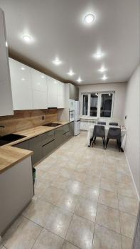 В квартире хороший ремонт, просторная кухня, имеется вся техника и мебель для комфортного проживания (на фото). Квартира очень теплая. Все окна выходят на застекленные лоджии, что очень безопасно