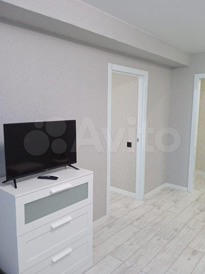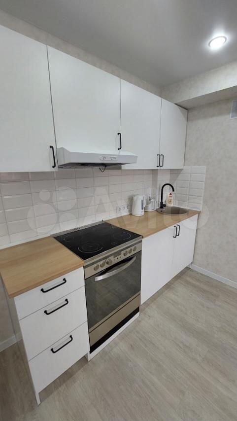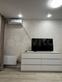 Кухня-гостиная: Диван, телевизор, Smart-TV Xiaomi c голосовым поиском (в стоимость аренды входит подключенный пакет Кинопоиск), большой комод Ikea, встроенная кухня Ikea, электроплита, высокий холодильник 2 м, микроволновая печь, кухонный стол Ikea, дополнительный столик, стулья, чайник. Имеется вся необходимая кухонная утварь и посуда (кастрюли, сковороды и др.)
