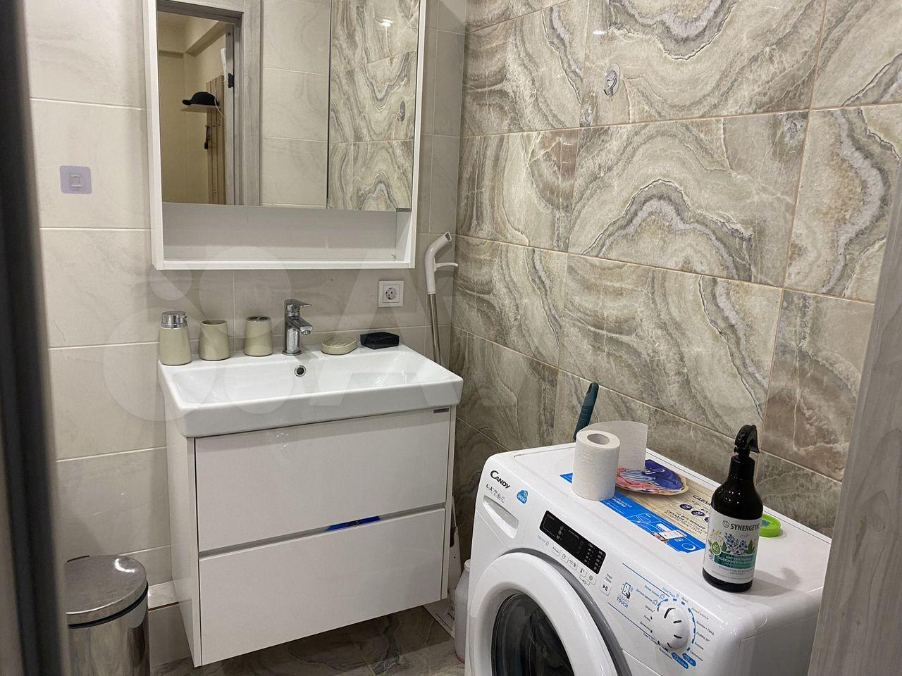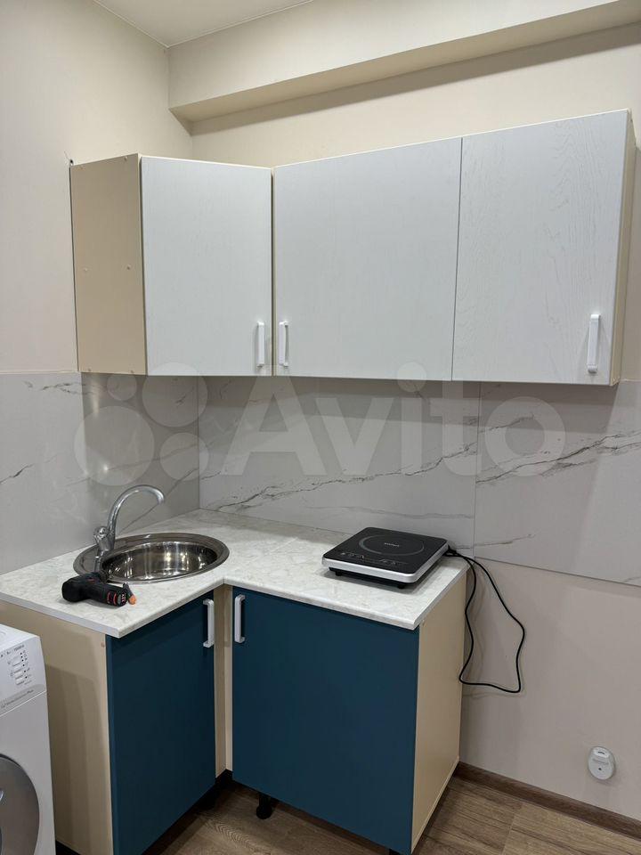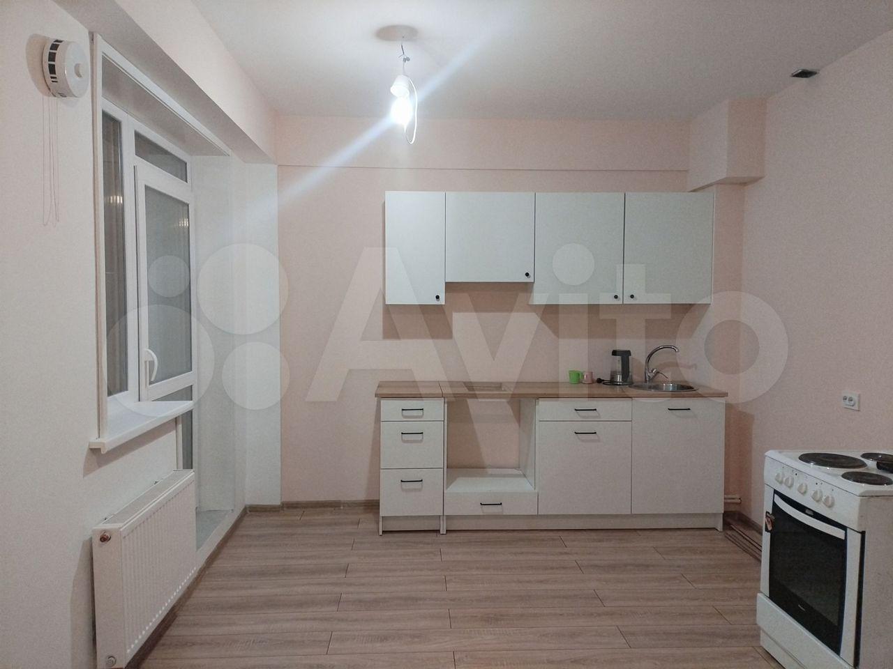 Квартира полностью готова к проживанию. Из мебели и техники: кухня, стол, шкаф для одежды, электрическая плита, диван, стиральная машина.