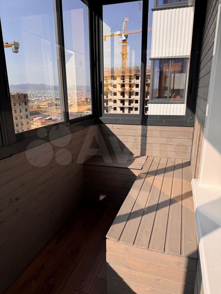 Балкон застекленный, с видом на город. Дом оснащен грузовым лифтом и открытой парковкой во дворе.