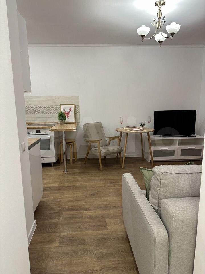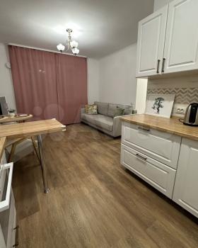 Сдаётся однокомнатная квартира с евроремонтом. Общая площадь — 35 кв. м, жилая — 28 кв. м, кухня — 5 кв. м. Квартира находится на 7 этаже 20-этажного кирпичного дома, построенного в 2017 году. Высокие потолки — 2.7 метра. Окна выходят во двор, поэтому всегда тихо и уютно.