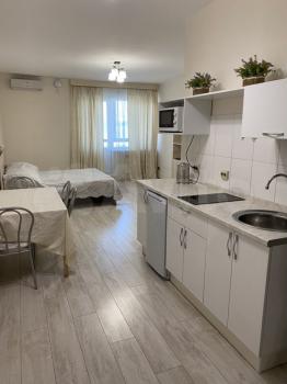Сдается двухкомнатная студия семейной паре, без животных, на длительный срок(минимальный срок 6 мес).В квартире есть все необходимое ,водонагреватель,стиральная машина автомат,варочная панель ,холодильник, телевизор,диван,кровать.Залог 20 тр.В подьезде консьерж.Дополнительная оплата по счетчикам+интернет.В рабочие дни звонить после 19.00