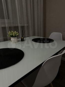 4. Обустроенная всеми удобствами, заезжай и живи. Две двухспальные кровати, диван, стол, обеденная зона столовыми принадлежностями.