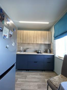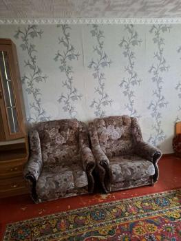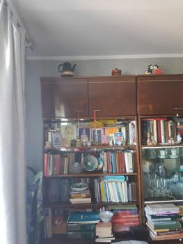 Теплая уютная двушка с окнами во двор, комнаты в разные стороны, в большой комнате балкон. Ремонт косметика. Санузел раздельный. В туалете большой водонагреватель. Ванная без ремонта. На кухне холодильник, микроволновка. В большой комнате стенка (более пустая чем на фото), диван, 1 мягкое кресло, стол. В комнате поменьше - кровать, стол, кресло-кровать, телевизор, 2 комода с выдвижными ящиками, тумбы. В коридоре большие шкафы для хранения верхней одежды и других вещей. Полки с книгами. Темнушка. Недалеко остановка маршрутки, магазины Титан, Николаевский,