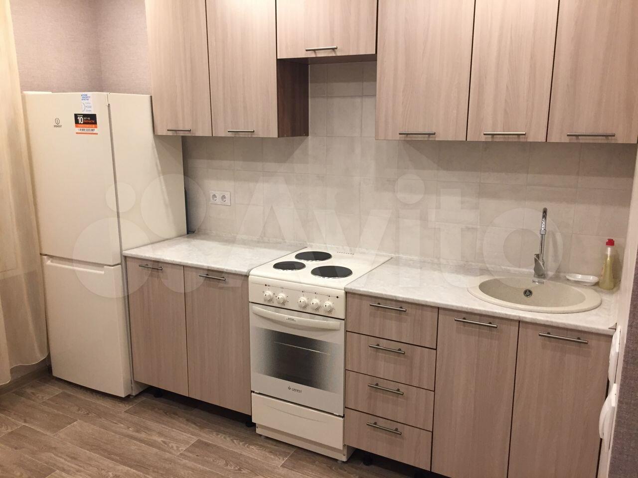 В квартире имеются: кухонный гарнитур, печь, холодильник, водонагреватель, стиральная машина, шкаф-купе, диван, кабельное телевидение и интернет.