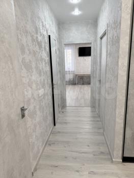 В квартире сделан косметический ремонт, просторная кухня площадью 7,5 кв. м оснащена необходимой мебелью, электропечью, холодильником. В комнате имеются диван- 2 м. раскладной, мини-диван раскладной, шкаф платяной, тумба. стулья. Совмещённый санузел оборудован ванной и стиральной машиной.