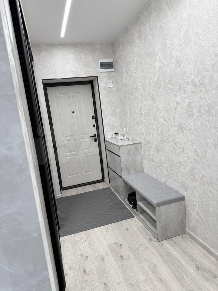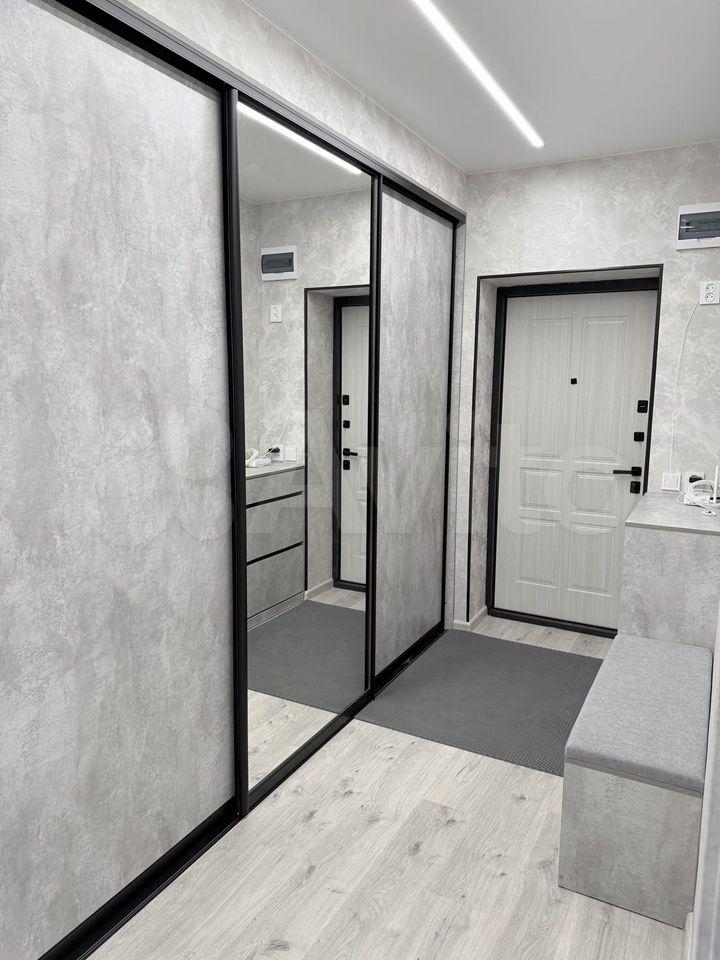 В прихожей большой встроенный гардеробный шкаф, который позволит вам с легкостью разместить все ваши вещи.
