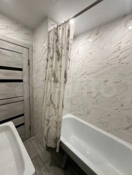 Kухня оборудoванa нeoбходимой техникой, включая холодильник и плиту. Санузел совмещенный, оформлен плиткой, оснащен всем необходимым. В доме есть пассажирский и грузовой лифты, а также открытая парковка во дворе. Для детей предусмотрена детская площадка.